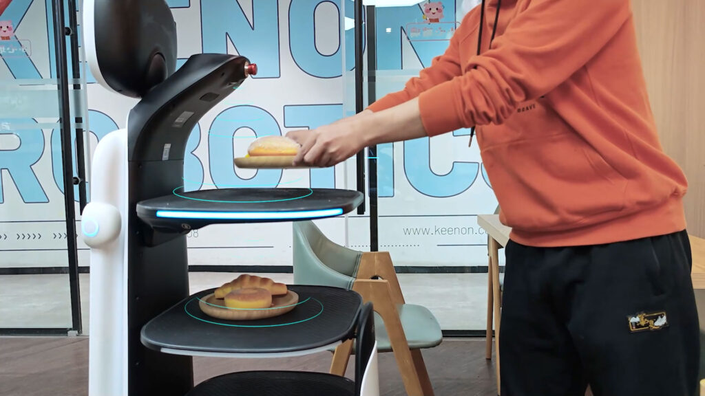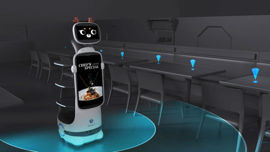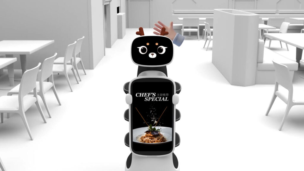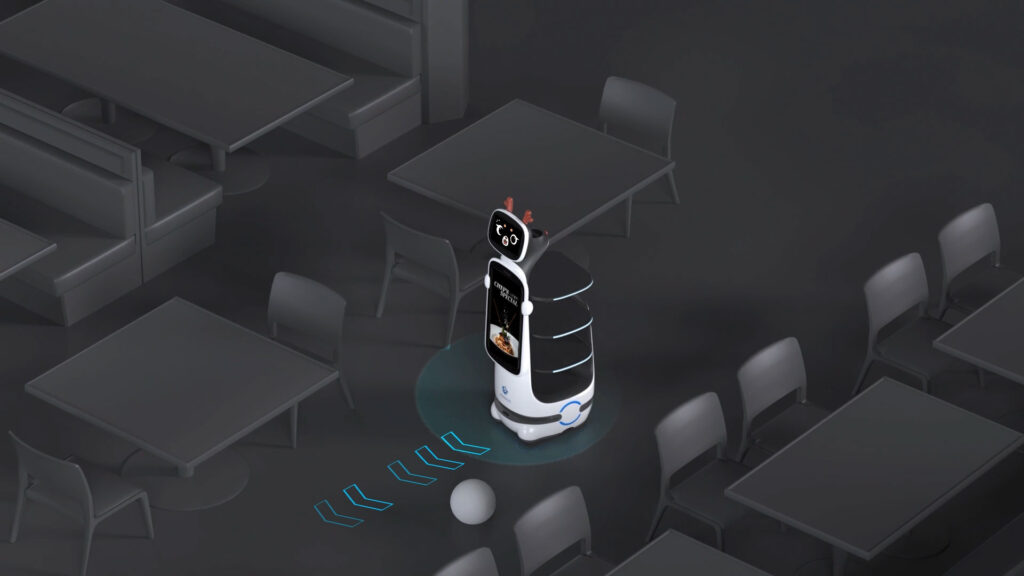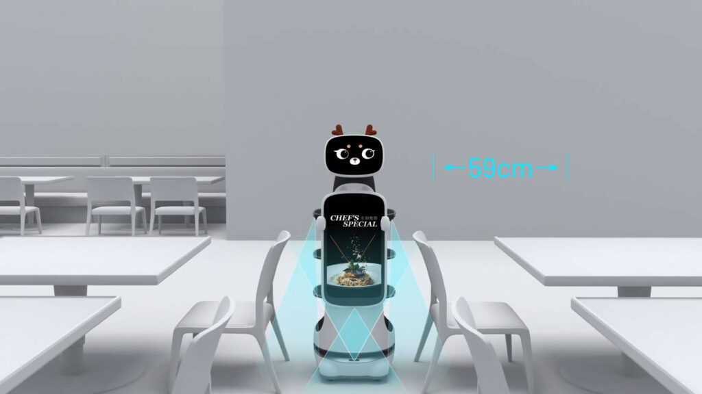 Experience the T10’s futuristic dining service, featuring its hygienic cover and large ad screen.